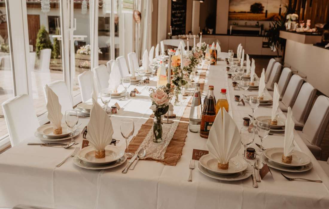 Unser erfahrenes Team steht Ihnen mit umfassender, kostenfreier Beratung zur Seite, um Ihre individuellen Wünsche zu verwirklichen. Genießen Sie die Möglichkeit einer freien Trauung in malerischer Umgebung und nutzen Sie unsere komfortablen Übernachtungsmöglichkeiten für Sie und Ihre Gäste.