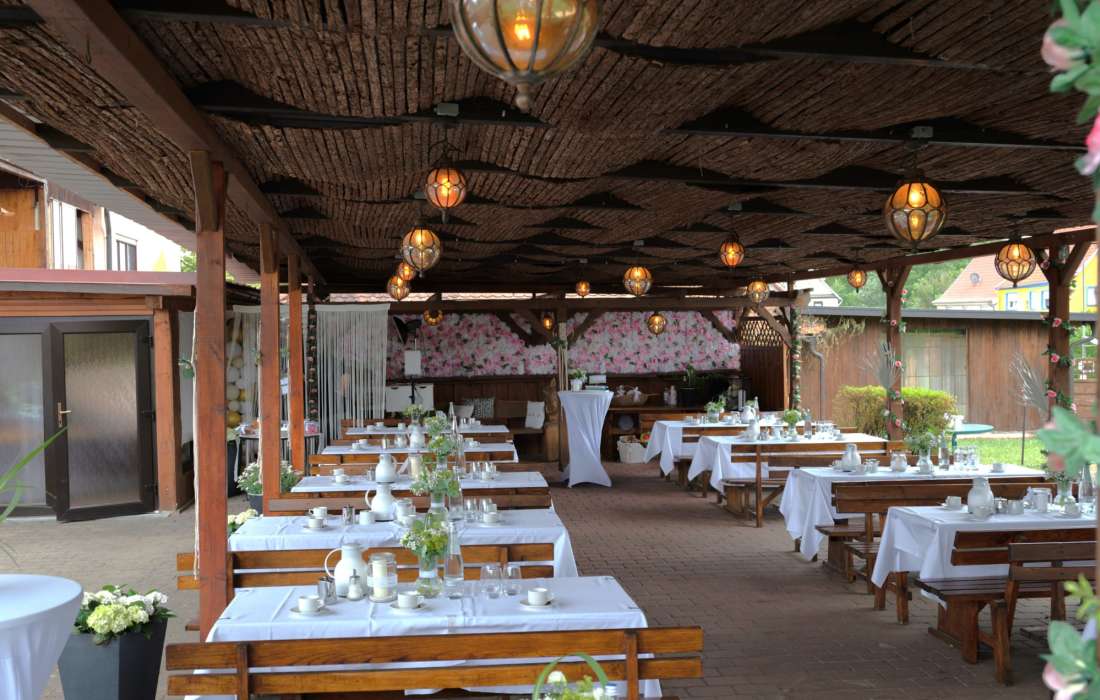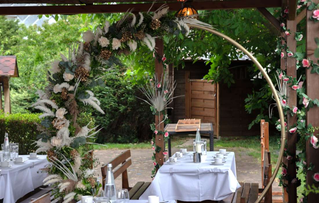 Tauchen Sie ein in die idyllische Atmosphäre unseres Hauses und entdecken Sie die perfekte Kulisse für Ihre Traumhochzeit. Mit stilvollem Ambiente und Platz für bis zu 130 Gäste bieten wir den idealen Rahmen für unvergessliche Feiern.