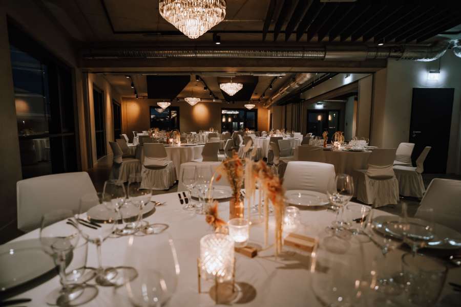 Ob 50 oder 120 Gäste - durch die flexible Raumgestaltung und Tischanordnung wird immer das passende Raumgefühl erzeugt. Lassen Sie sich von unseren Raumkonzepten überzeugen.