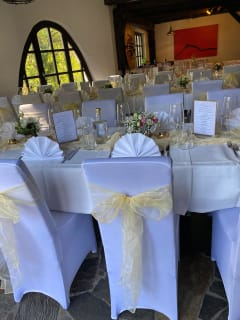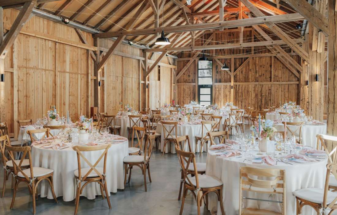 Unsere Gebäude sind mit moderner Infrastruktur ausgestattet. Runde und/oder Banketttische, Crossback-Stühle, Parkplätze sowie fest installierte Lichterketten und in der Feldscheune zusätzlich die farbige LED-Beleuchtung sind im Mietpreis bereits enthalten.