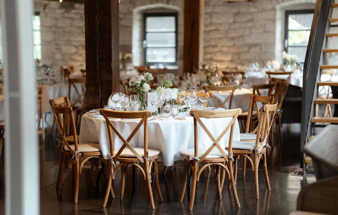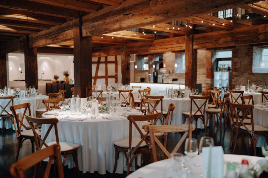 Euch wird die malerische Kulisse der umliegenden Weinberge sowie das charmante Ambiente der alten Bauwerke gefallen. Eine moderne Innenausstattung und die großzügige Außenanlage bieten ein bezauberndes Flair für eure Hochzeit.