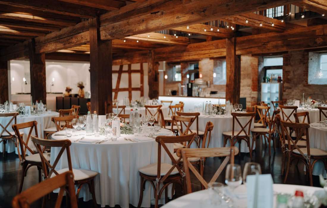Im Fruchtkasten mit Galerie, geprägt von Fachwerk und Steinmauern, feiern Sie ab 50 bis zu 95 Personen. Der großzügige Außenbereich ist die perfekte Kulisse für Ihre freie Trauung und Sektempfang.