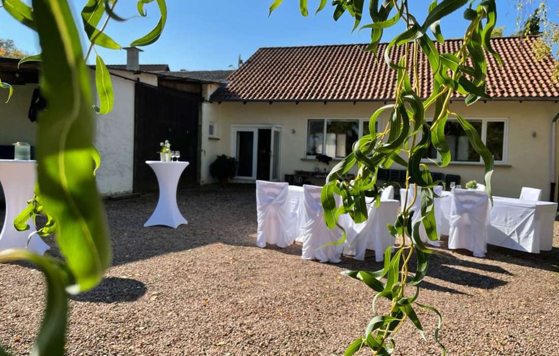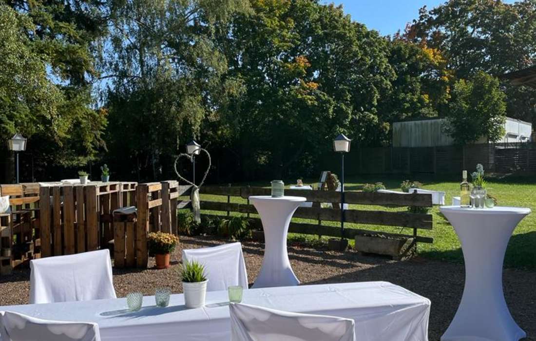 Der angrenzende Außenbereich, mit riesiger Wiese bietet Ihnen unzählige Möglichkeiten z.B. freie Trauung, Kinderbelustigung, Musikbands, Sektempfang oder Livecooking....