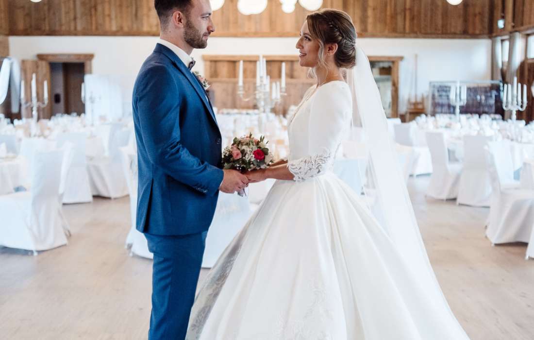 ihr wünscht euch eine Hochzeitslocation, die Romantik, Natur und modernes Ambiente verbindet? Dann seid ihr im Feststadl Allgäu genau richtig. Unser Stadl vereint urige Gemütlichkeit mit stilvoller Eleganz: sonnenverbranntes Holz, bodentiefe Panoramafenster und eine großzügige Terrasse mit Blick auf die Allgäuer Alpen schaffen eine Traumkulisse für euren großen Tag.