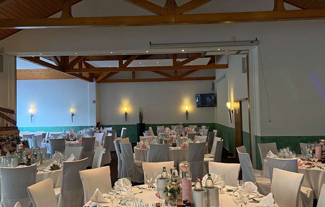 Wir bieten eine Festsaal mit Wintergarten und Außenbereich bis 200 Personen. Keiner stört die Ruhe und keiner gibt eine Zeit vor. Feiern Sie ausgelassen.