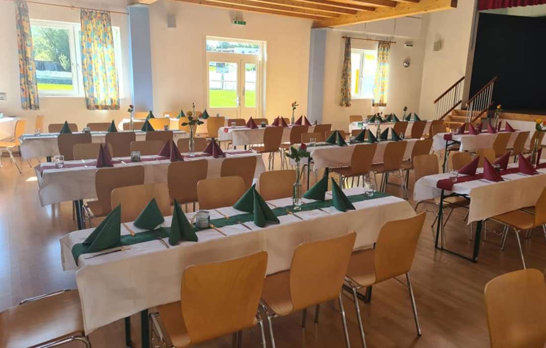 Für Hochzeiten, Geburtstagsfeiern, Firmungen, Taufen, Jubiläum und Partys bieten wir einen kleinen Saal bis ca. 40 Personen, eine Terrasse (mit Zelt möglich) für ca. 80 Personen und einen großen Saal für ca. 500 Personen.