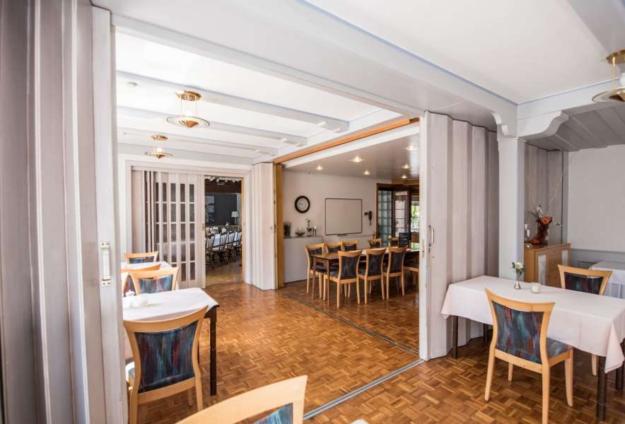 Die Kirche ist fußläufig und es bietet sich an, dort zu heiraten und dann im Hochzeitszug zum Gasthaus in den schönen Garten zu einem Apero und Empfang, dann anschlies-send ein großes Buffet oder 5-Gang-Menu mit Tanzfläche für den Hochzeitwalzer und ausschweifende Parties durch die ganze Nacht.
