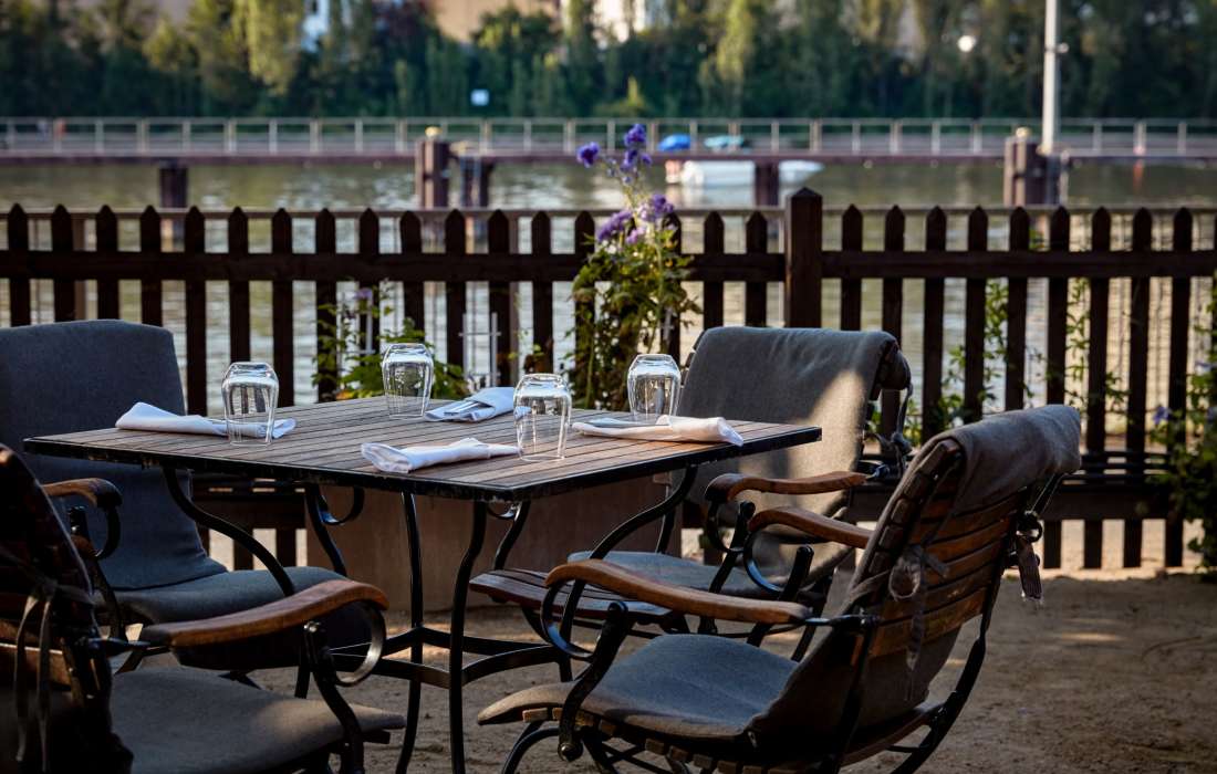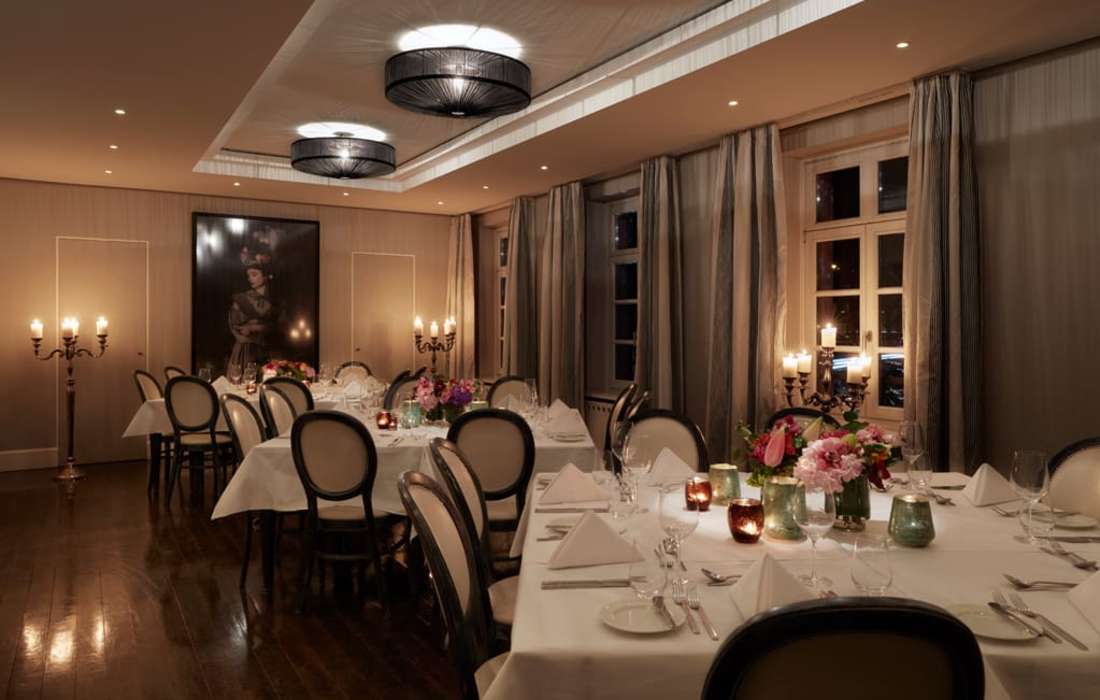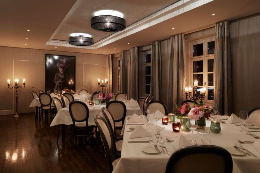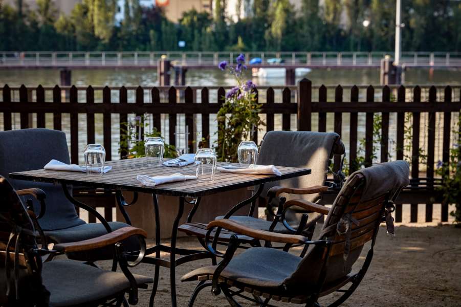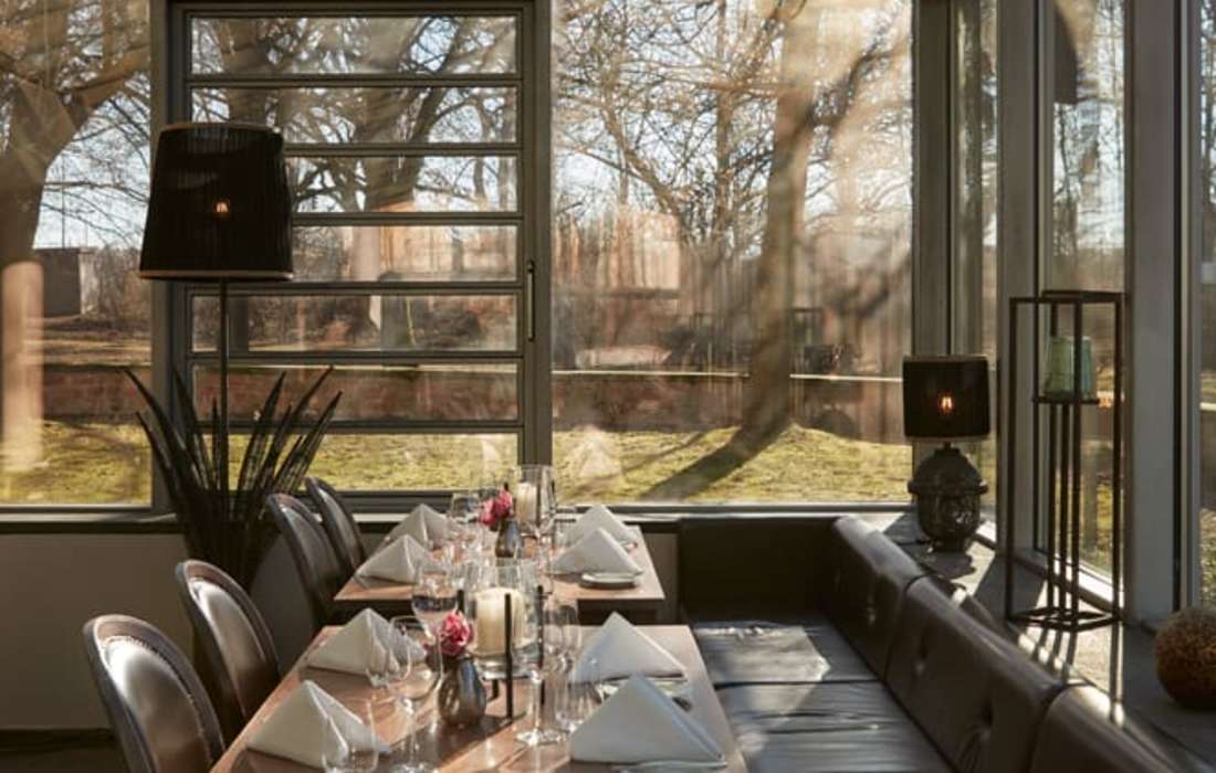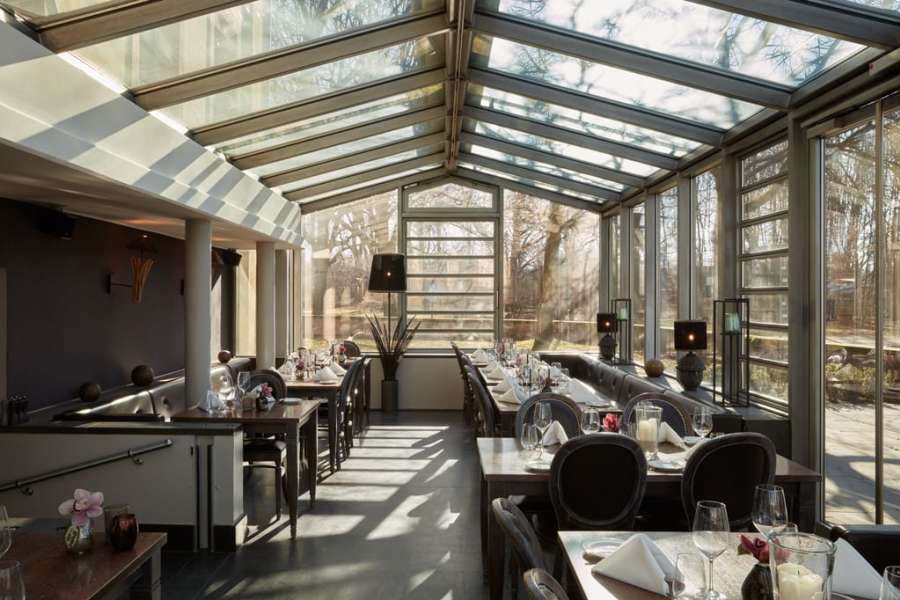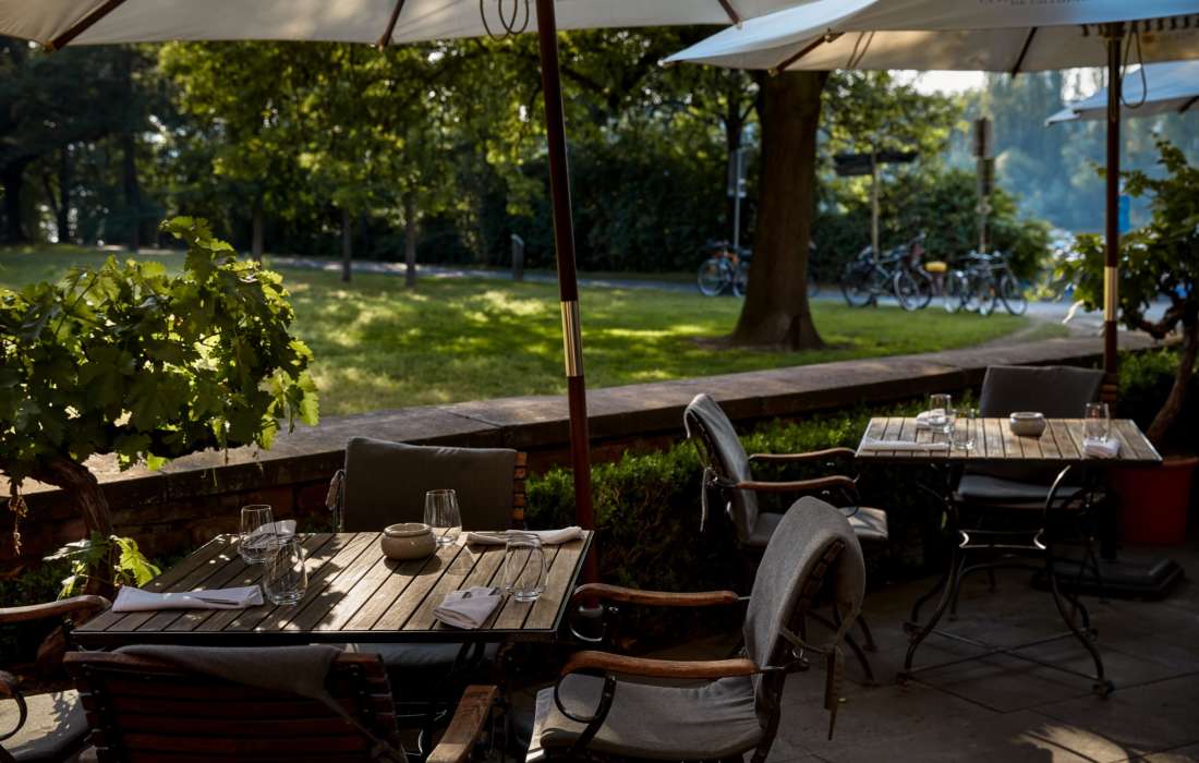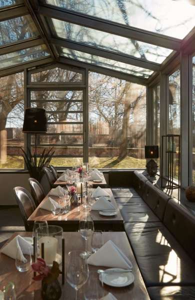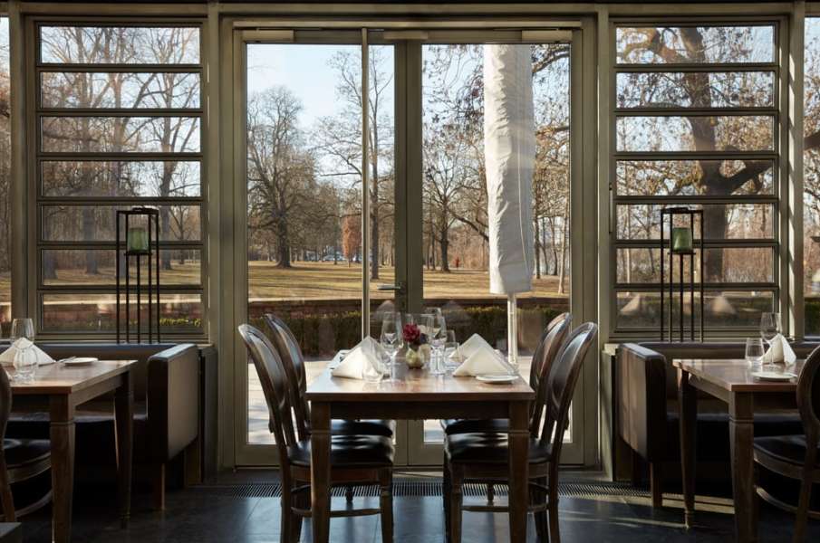 Das Restaurant überzeugt mit seinem puristische Design und authentischen Materialien und verbreitet Behaglichkeit und Wärme. Die Kunstfertigkeit der Küche zeigt sich durch das Team um Jörg Ludwig: anspruchsvolle Menüs und deutsche sowie Frankfurter Spezialitäten überzeugen auf klarer Linie. Das Konzept von traditionellen Werten und zeitgemäßem Anspruch findet sich auch hier wieder. Das Restaurant umfasst verschiedene Räume, ist dank großer Durchbrüche dennoch transparent. Der angeschlossene Wintergarten gewährt einen großzügigen Blick nach draußen, wo Gäste in den warmen Monaten auf den Terrassen mit Blick auf Frankfurts Skyline feiern und schlemmen können.