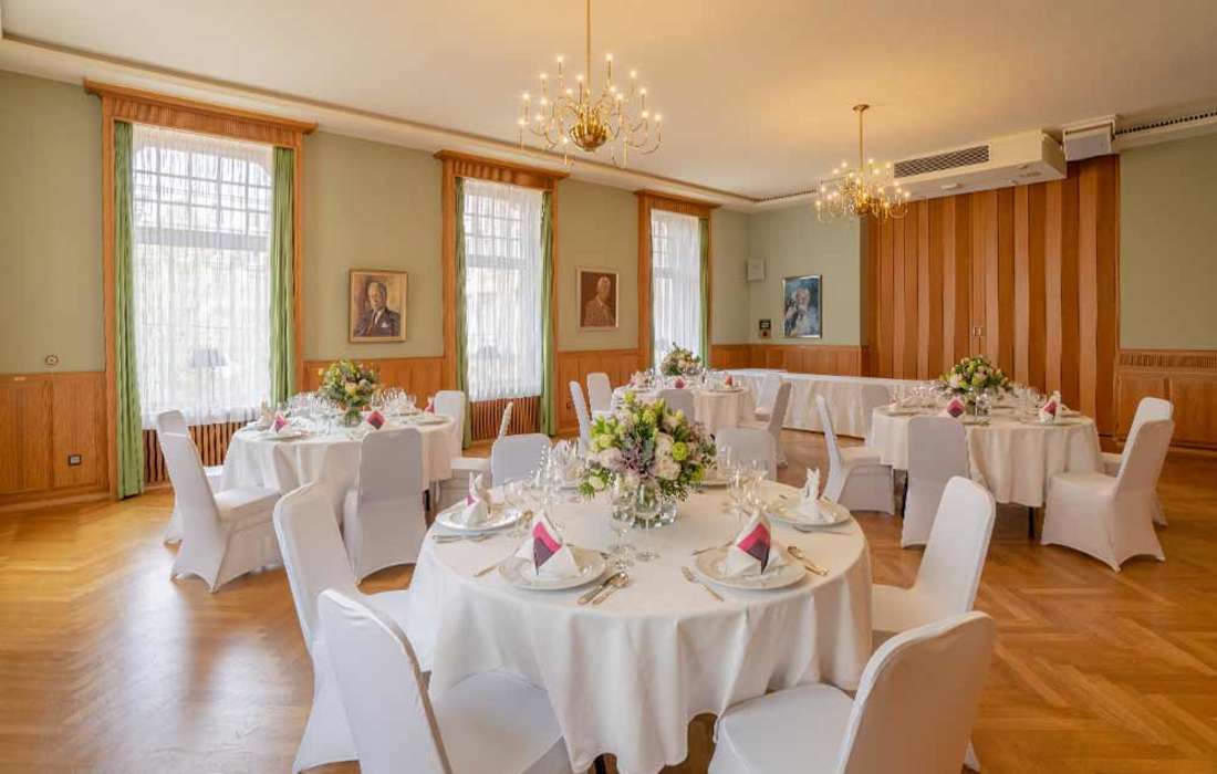 - Mehrere Festsäle und Räume in verschiedenen Größen individuell kombinierbar.