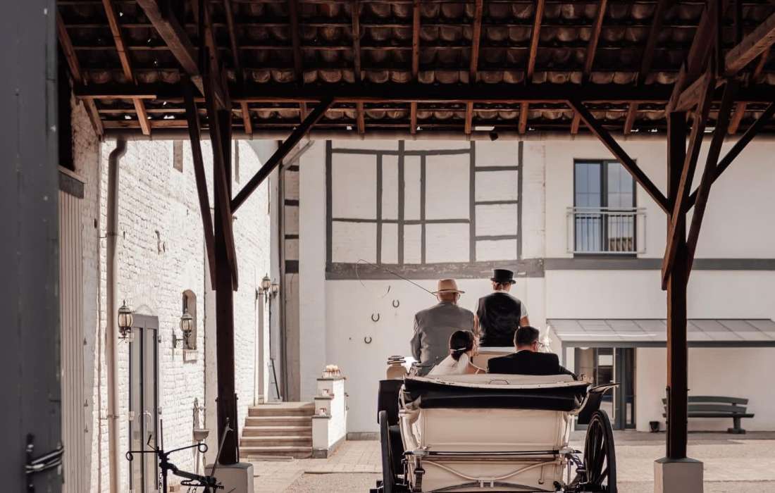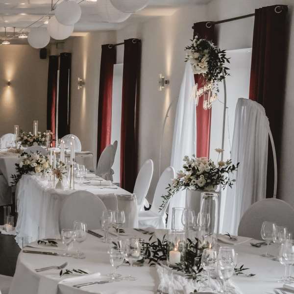 Feiern Sie auf unserem Gutshof eine Traumhochzeit, beginnend mit der Einfahrt der Kutsche oder des Brautautos auf den Innenhof für den Empfang durch Ihre Gäste in malerischer Kulisse, umgeben von der Balance aus altem Fachwerk und moderner Restauration. Nach Ihrem Sektempfang (oder doch lieber ein Lillet-Empfang?) feiern Sie weiter im Festsaal mit bis zu 144 Gästen. Nach dem Essen kommen noch Partygäste hinzu? Wir haben genügend Platz. Genießen Sie für freie Trauungen oder einfach das Fotoshooting unsere Grünanlage mit Trauwiese, historischer Motte und Panoramablick ins grüne Tal zur Rur. Nach einer langen Feier ohne Sperrstunde geht es nur einmal die Treppe hoch zu Ihrem Hotelzimmer, hier muss sich keiner Gedanken um die Taxifahrt machen.