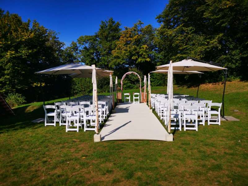 Sie haben die Wahl, wie Sie Ihre Feier gestalten möchten. Bei uns vor Ort stehen Ihnen zahlreiche Möglichkeiten offen. Wie wäre es zum Beispiel mit einer freien Trauung auf der grünen Wiese?
