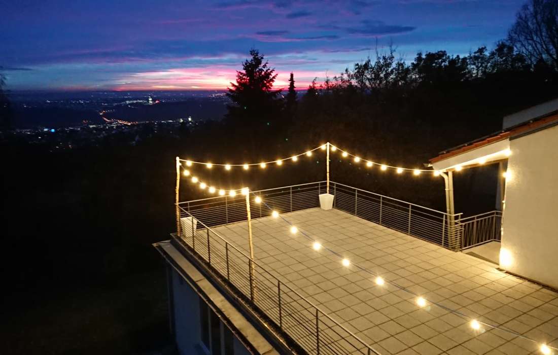 Mit Blick auf die Schwäbische Alb und auf die Dächer der Stadt Esslingen kommt sicher eine besonders romantische Stimmung auf. Sollte das Wetter nicht mitspielen, wenn Sie heiraten, bieten unsere charmanten Waldhütten ein gemütliches Ambiente für Ihre Trauung.