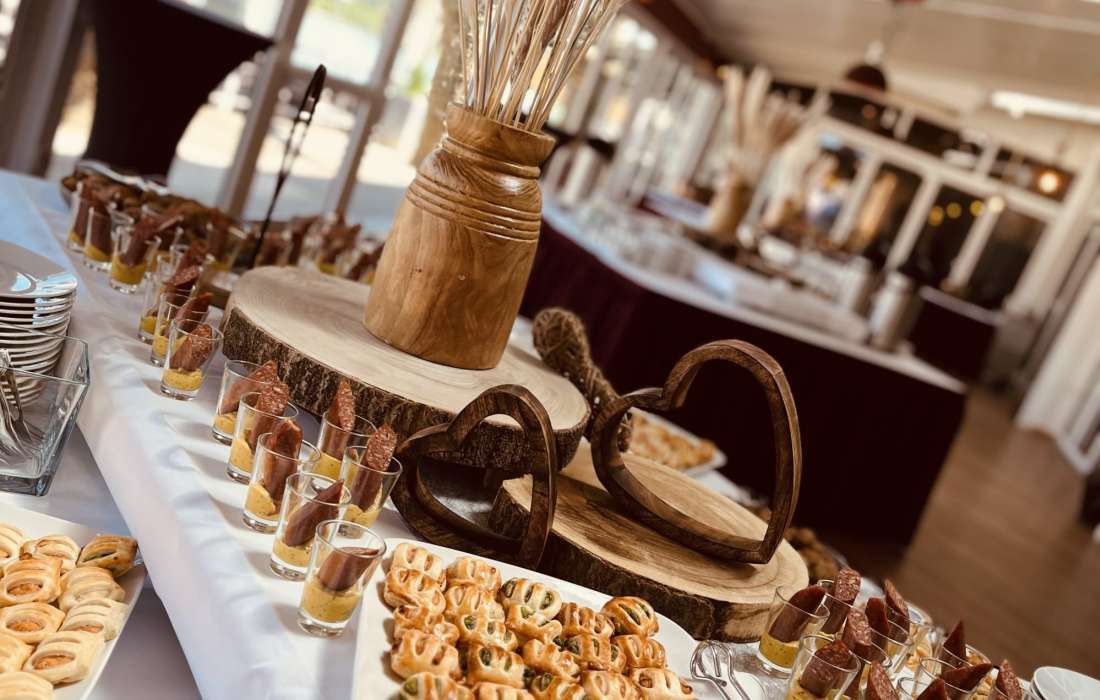 | Angebotene Verköstigung | Sektempfang, Kaffeespezialitäten, Menü, Kuchenbuffet, Mitternachtssnack, Fingerfood, Buffet |