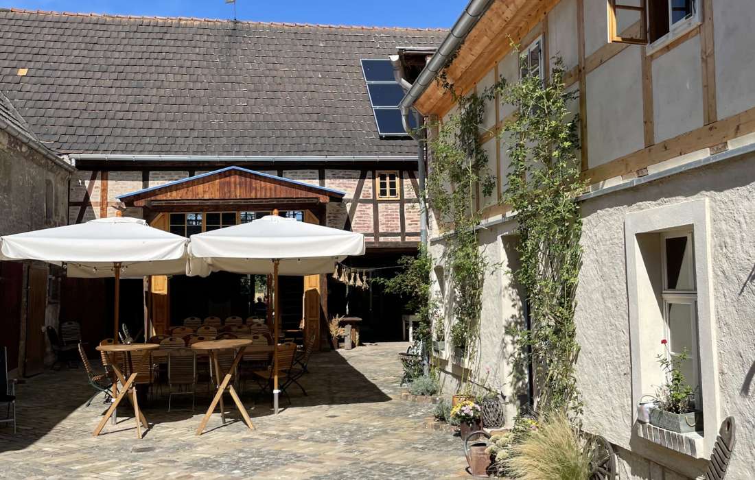 Herberts Hof befindet sich im Herzen des idyllisch gelegenen Örtchens Werben bei Pegau. Er besteht aus einer gemütliche Scheune, einem Bauernhaus mit Schlaf- und Kinderzimmern, einem gemütlichen Hof und einem schönen Garten mit einer großen Obstbaumwiese. Genug Platz für Freunde und Familie, für Romantik, unvergessliche Momente und ausgelassene Freude.