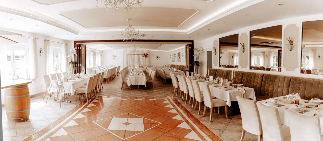 Gelangen Sie nach Ihrem Empfang im Biergarten mit Blick auf den See in unseren festlichen Festsaal.