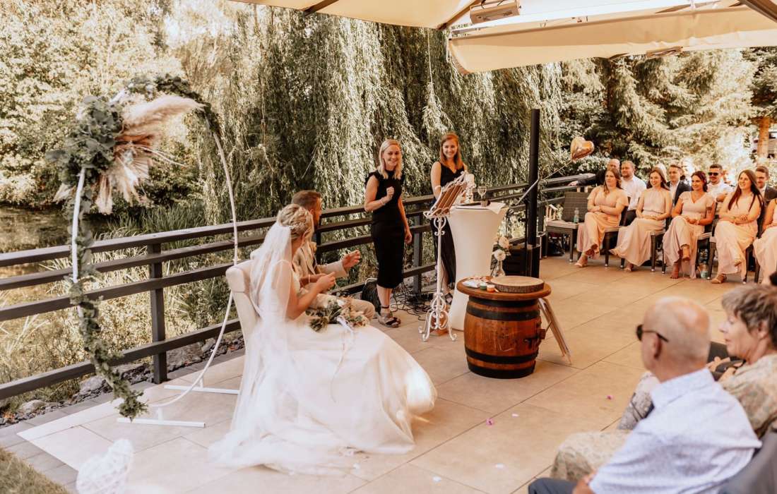 Unsere Hochzeitsplanerin begleitet Sie bei allen Fragen und wird Ihre individuelle Hochzeit ganz nach Ihren Wünschen gestalten. Dabei stellen wir Ihnen gerne unser großen Netzwerk an weiteren Dienstleistern zur Verfügung.