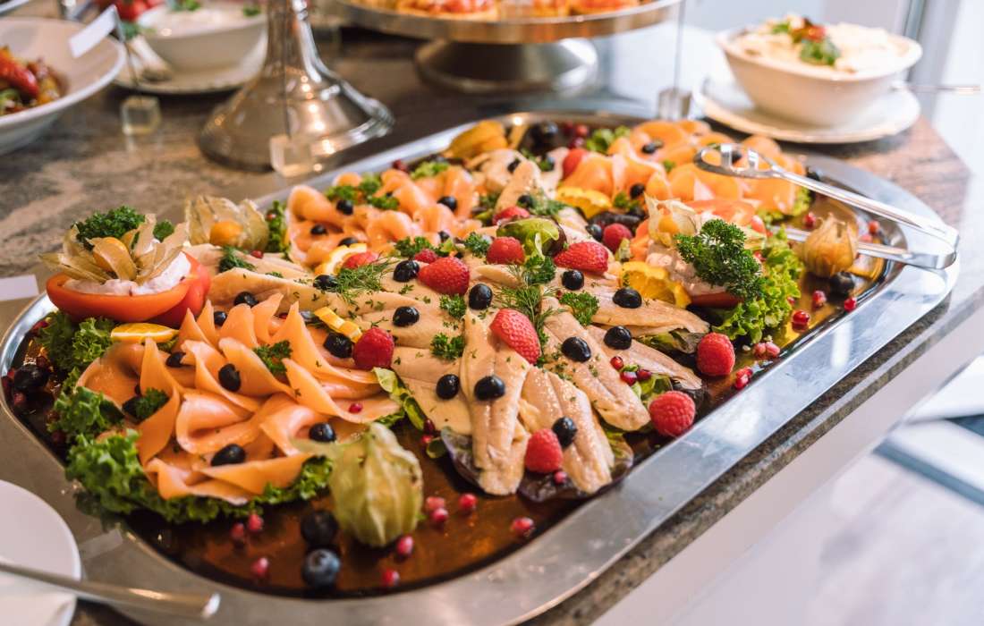 In einem direkt anschließenden Raum servieren wir Ihnen ein Buffet ganz nach Ihren Wünschen. Unser Küchenchef legt großen Wert auf regionale und saisonale Produkte zum Beispiel mit Roastbeef vom Rind, welches ca. 50km im Umkreis aufgewachsen ist.