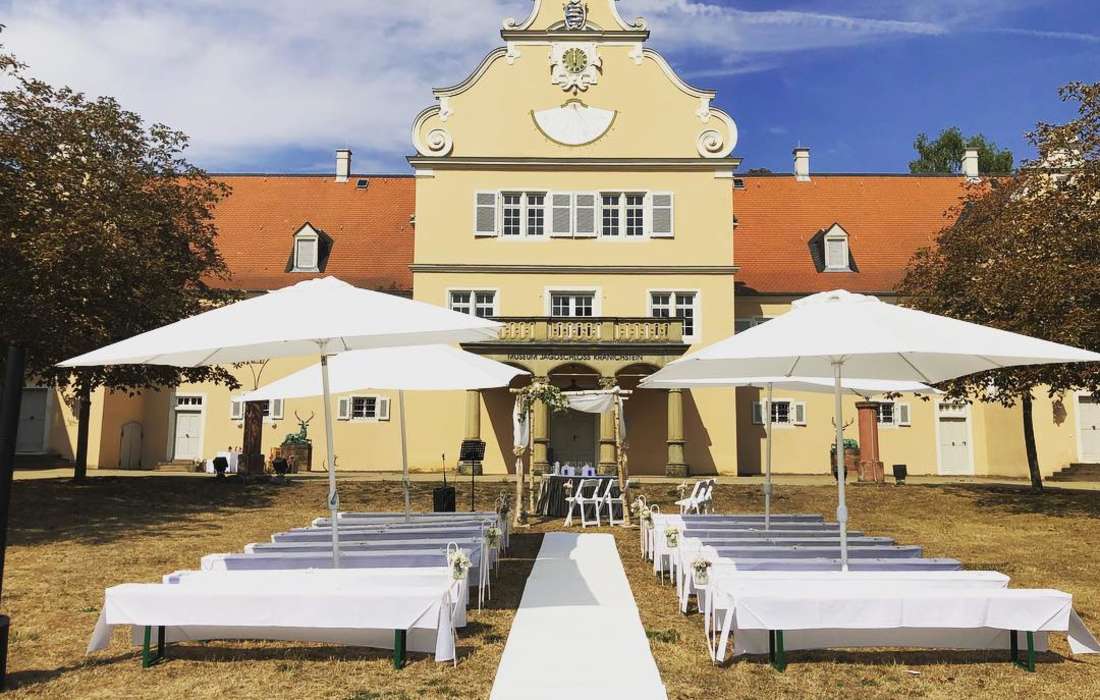 | Erklärung zur Gästezahl | Schlosssaal (bis 130 Personen), Blauer Salon (bis 60 Personen) |