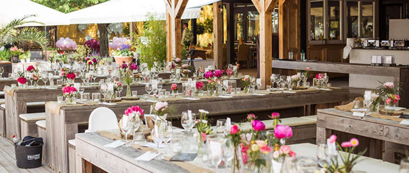 Besonders in der Sommerzeit besticht unsere Außenanlage mit dem stilvoll gestalteten Beachbereich. Man muss nicht ins Ausland reisen, um eine Hochzeit mit Sommerfeeling zu feiern!