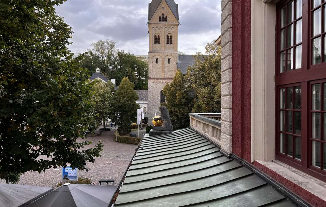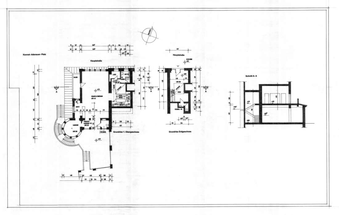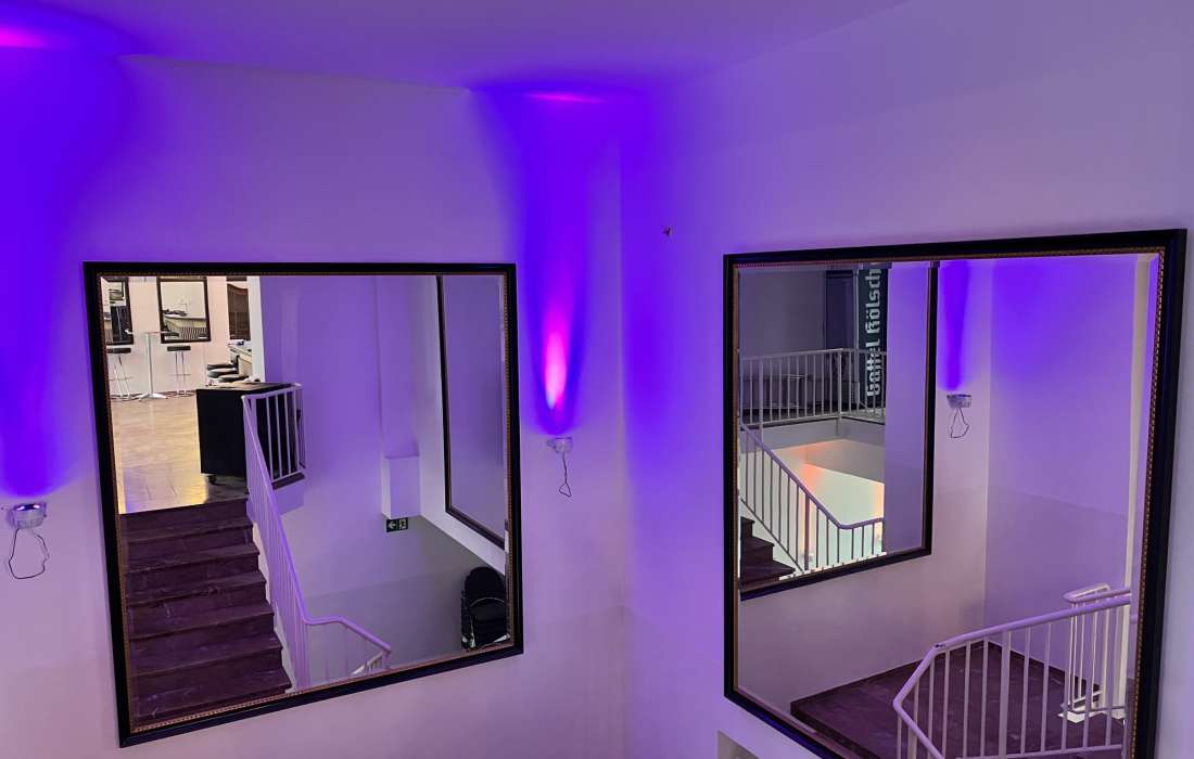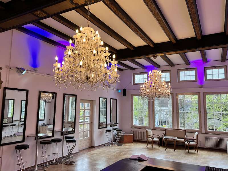 Im historischen Teil des Bergischen Löwen mit Zugang über das Foyer an der Hauptstrasse 202 oder aber über die cinderella-artige Rundtreppe direkt in den Saal über den Konrad Adenauer Platz.