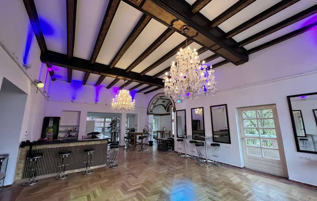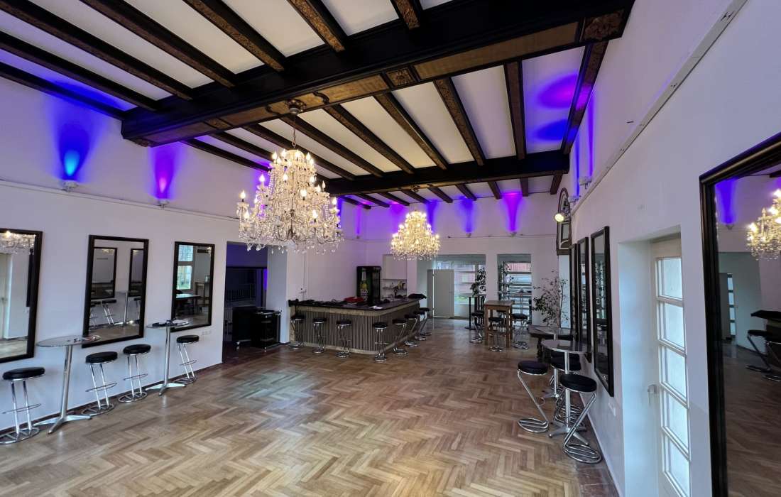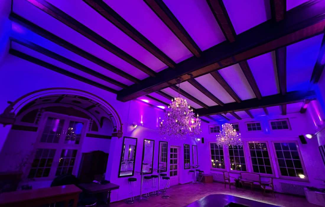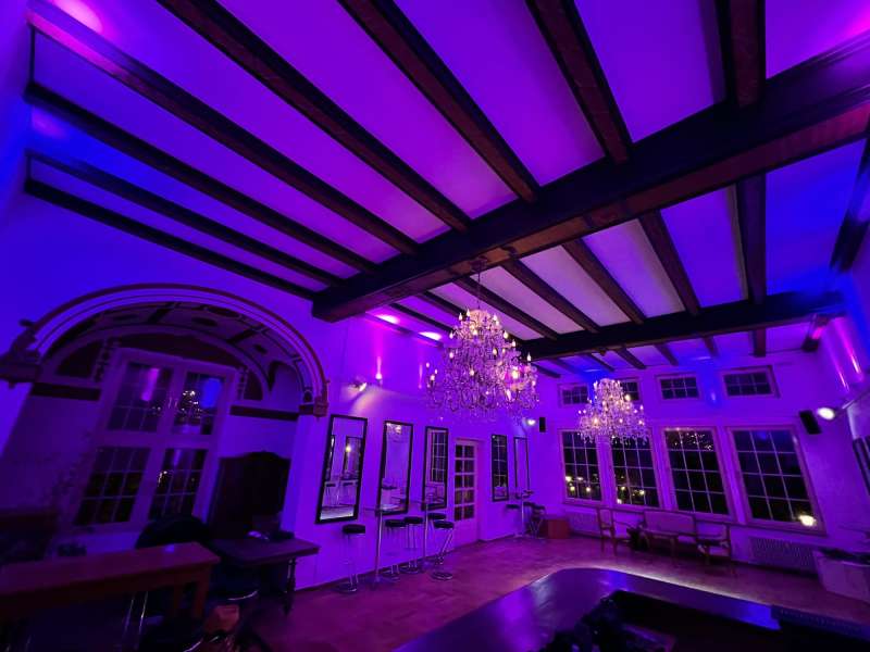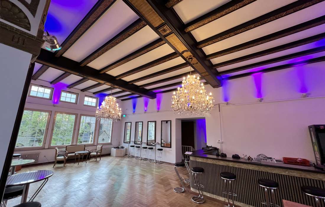 Im 5 Meter hohen LöwenSaal im 1 OG mit denkmalgeschützter Decke stehen Euch modernste Ton- und Lichttechnik zur Verfügung.