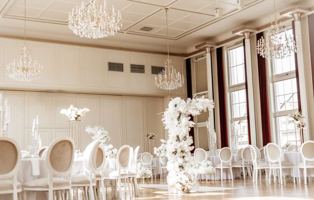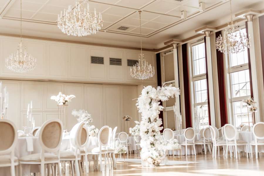 Willkommen in der wunderschönen Hochzeitslocation im Barockstil. Die majestätische Fassade und Eingangshalle versetzen Sie zurück in eine vergangene Epoche, als Stil und Eleganz noch zum Alltag gehörten.