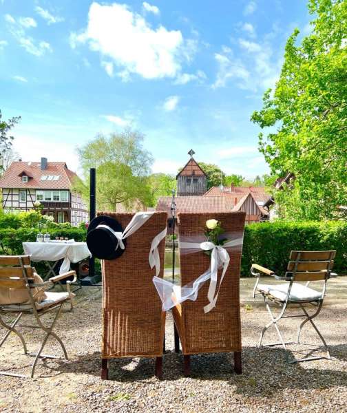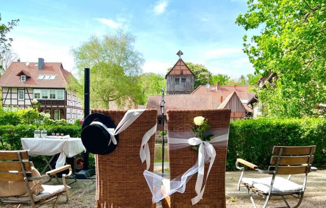 Im Mühlengrund ist die Hochzeit wie im Märchen: Das romantische Klosterdorf Wienhausen mit dem einzigartigen Trauhaus auf einer kleinen Insel mitten im Dorf bietet die ideale Kulisse, und das historische Fachwerkhaus „Mühlengrund“ das „stilvolle Ambiente“ für Ihre Hochzeit. Sie und Ihre Gäste werden sich wohlfühlen und der schönste Tag im Leben wird Ihnen in bester Erinnerung bleiben. Das Kloster mit der St. Marien Kirche sind keine 5 Geh-Minuten von uns entfernt. Der Klosterpark bietet sich an für die Hochzeitsfotografie. Parkplätze sind in groser Stückzahl vorhanden. Alles liegt Dich beieinander. Direkt am Wasser gelegen zu heiraten ist in Celle einmalig.
