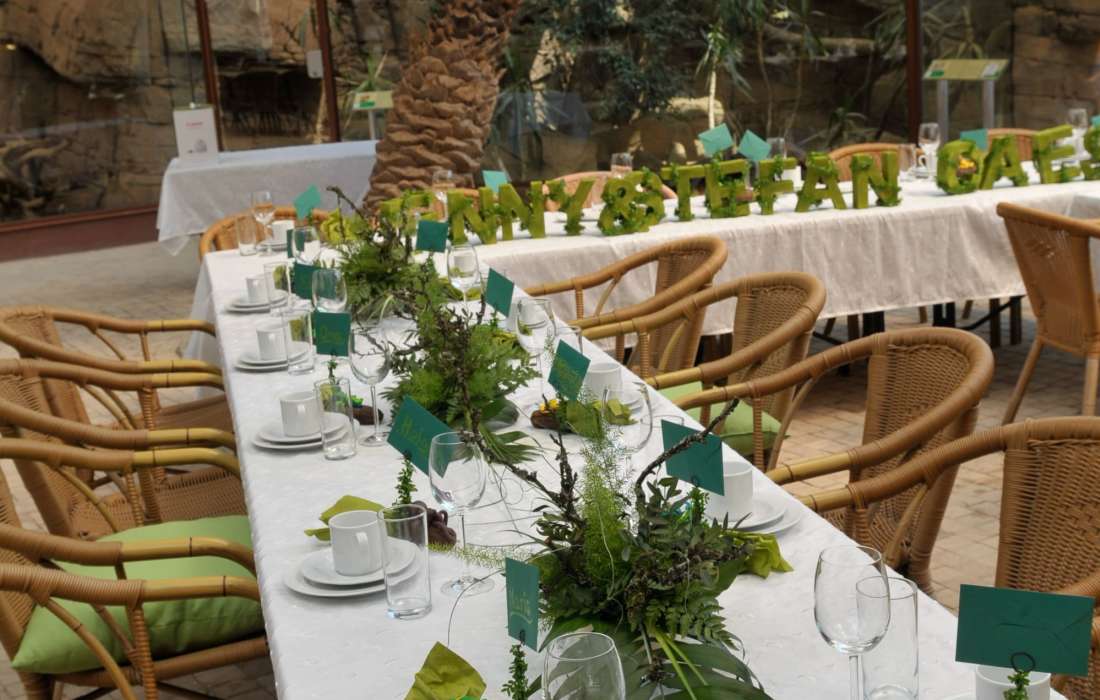 Gefeiert wird dann in der Wüstenhalle, die mit den hohen Felswänden und den offen gestalteten Terrarien jeder Feier das gewisse Etwas verleiht.