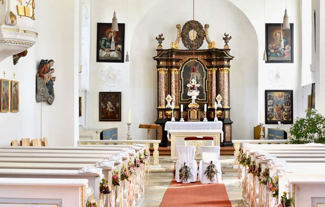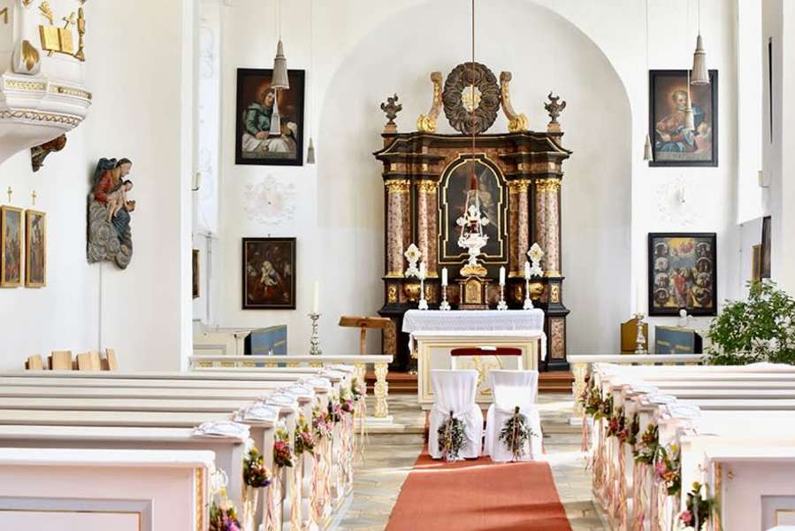 Auf unserem Platz steht eine verträumte kleine, mit Stuck verzierte Barockkirche. Hier kann Ihre katholische bzw. ökumenische Trauung stattfinden. Auch für freie Trauungen gibt es sehr schöne Räume in Blumenthal. Wenn es das Wetter erlaubt können Sie auch im Freien - in unserem wunderbar romantischen Schlosspark - eine Zeremonie abhalten. Gerne bieten wir Ihnen einen Sektempfang nach der Trauung direkt vor der Kirche oder im Schlosspark.