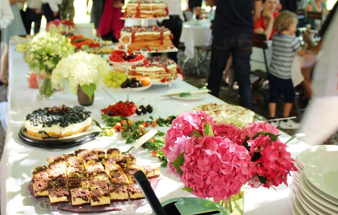 | Angebotene Verköstigung | Fingerfood, Kaffeespezialitäten, Menü, Cocktails, Kuchenbuffet, Mitternachtssnack, Sektempfang, Buffet |