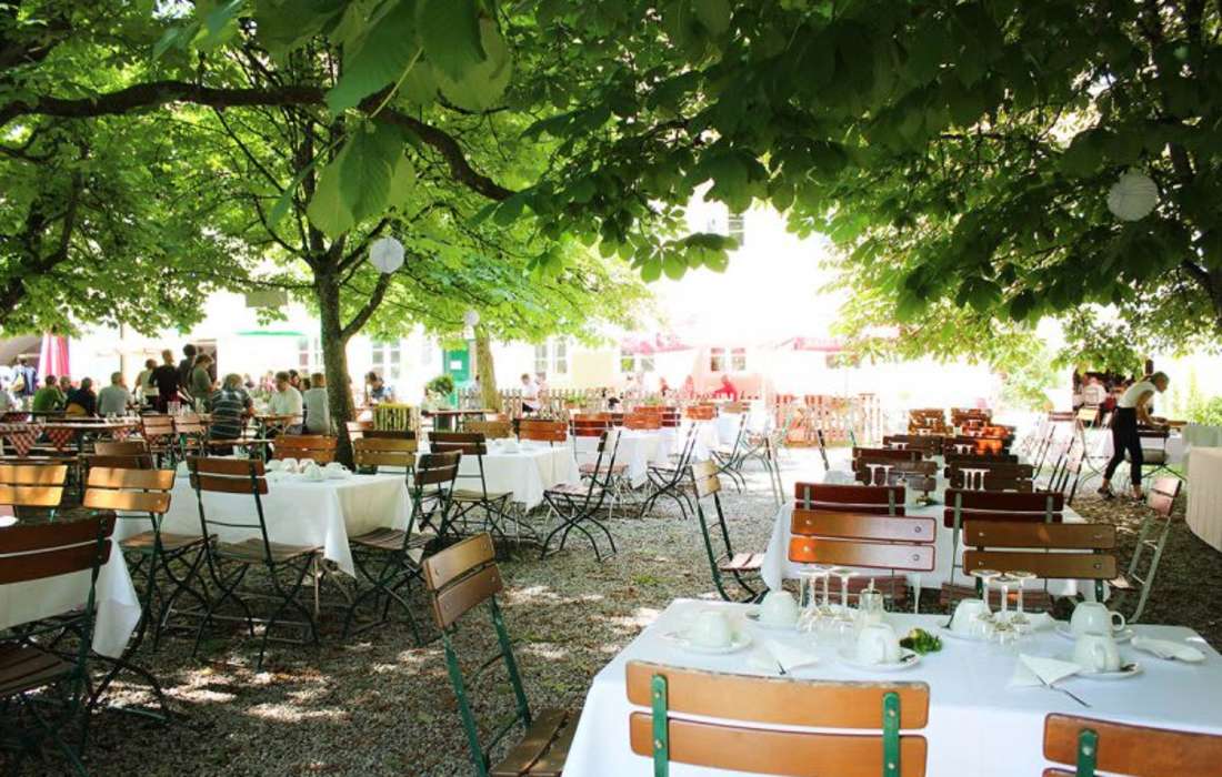 Kaffee und Kuchen können Sie dann unter den schattigen Kastanien eines der schönsten Biergärten Bayerns genießen.