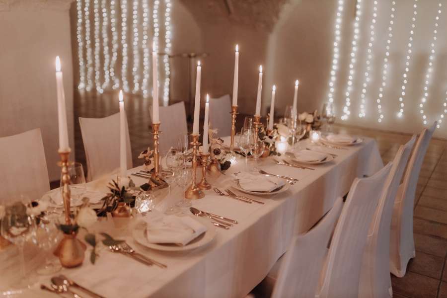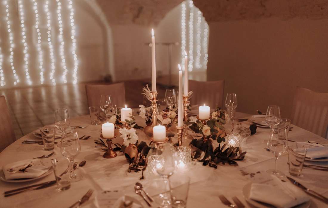 Das historische Gemäuer und das warme Licht unseres Saals schaffen eine festliche Grundstimmung für Ihre Feierlichkeiten im Rahmen der Familie. Für kleine Gesellschaften eignet sich auch das Rechberg-Séparée.