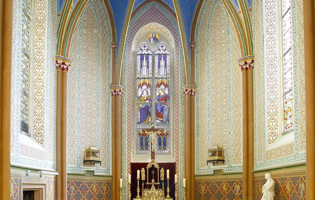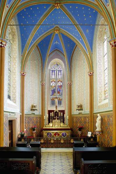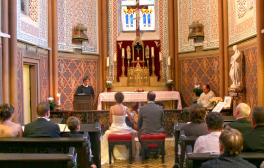 Die Schlosskapelle mit ihrer neogotischen Farbenpracht ist der ideale Rahmen für eine außergewöhnliche kirchliche Trauung (römisch-katholisch und evangelisch) in privater Atmosphäre. Zusammen mit der Fürstenloge stehen den Gästen etwa 40 Sitzplätze zur Verfügung.