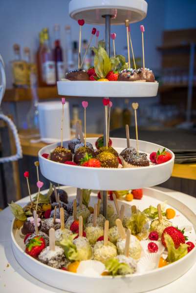 | Angebotene Verköstigung | Kuchenbuffet, Mitternachtssnack, Kaffeespezialitäten, Grillbuffet, Cocktails, Buffet, Fingerfood, Sektempfang, Menü |