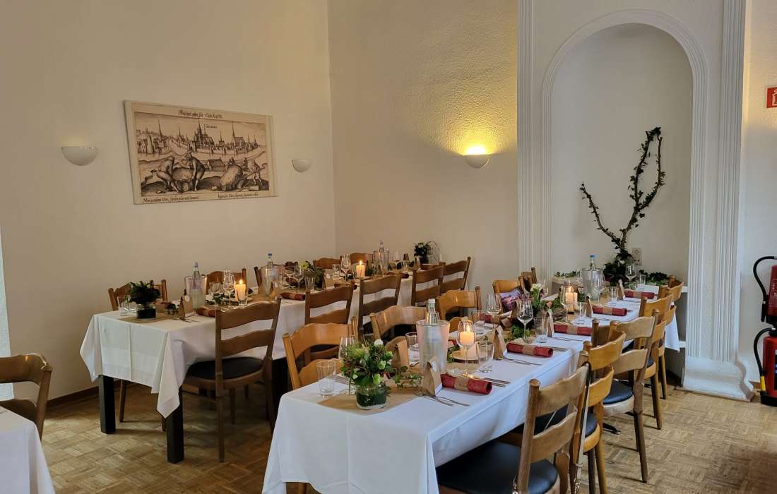 Verschiedene Räumlichkeiten bieten bequem Platz für 110 Personen, der zuvorkommende und unkomplizierte Service lässt keine Wünsche offen. Darüber hinaus erleichtern Ihnen unsere attraktiven und variablen Arrangements die Kalkulation Ihrer Feier.