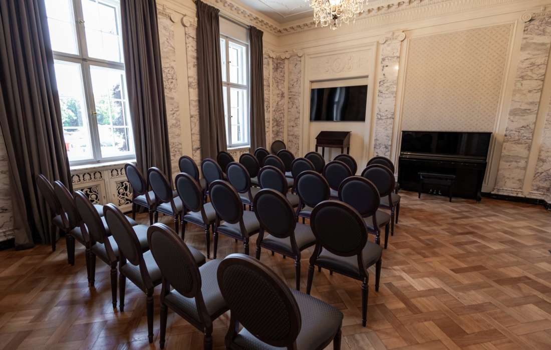 Der festliche Saal mit Platz für rund 60 Personen bildet das Herzstück des Hauses – perfekt für eine intime, stilvolle Hochzeitsfeier im Kreise Ihrer Liebsten. Für den Empfang unter freiem Himmel oder das Anstoßen bei Sonnenuntergang bietet die großzügige Terrasse einen herrlichen Blick ins Grüne. Der angrenzende Palais-Garten mit altem Baumbestand, romantischen Wegen und versteckten Plätzen lädt zu entspannten Spaziergängen, emotionalen Fotoshootings oder einer freien Trauung unter freiem Himmel ein.