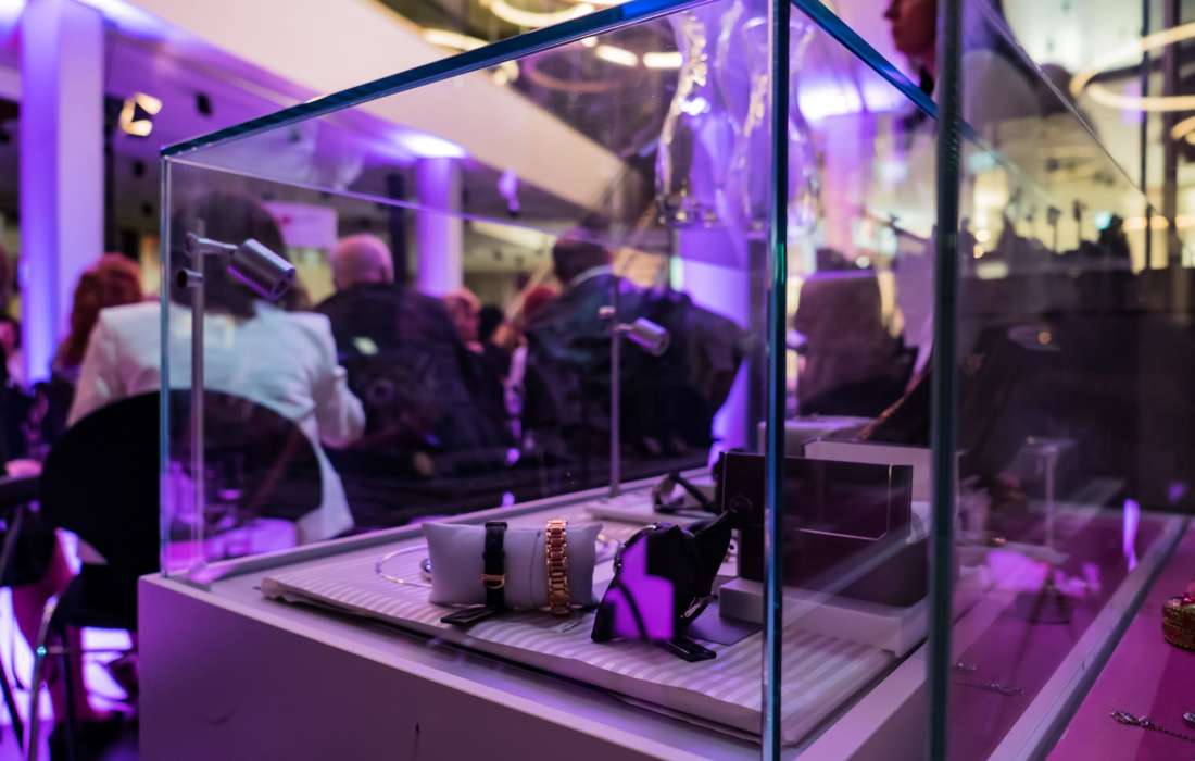 Die Schmuckwelten liegen zentral in der Pforzheimer Innenstadt. Wo sonst tagsüber Schmuck gekauft und hergestellt wird, zeigen sich die Schmuckwelten zu Ihrer Veranstaltung in einem ganz anderen Ambiente: Inmitten von Vitrinen und Schaukästen entsteht eine einmalige Veranstaltungsfläche für höchste Ansprüche.
