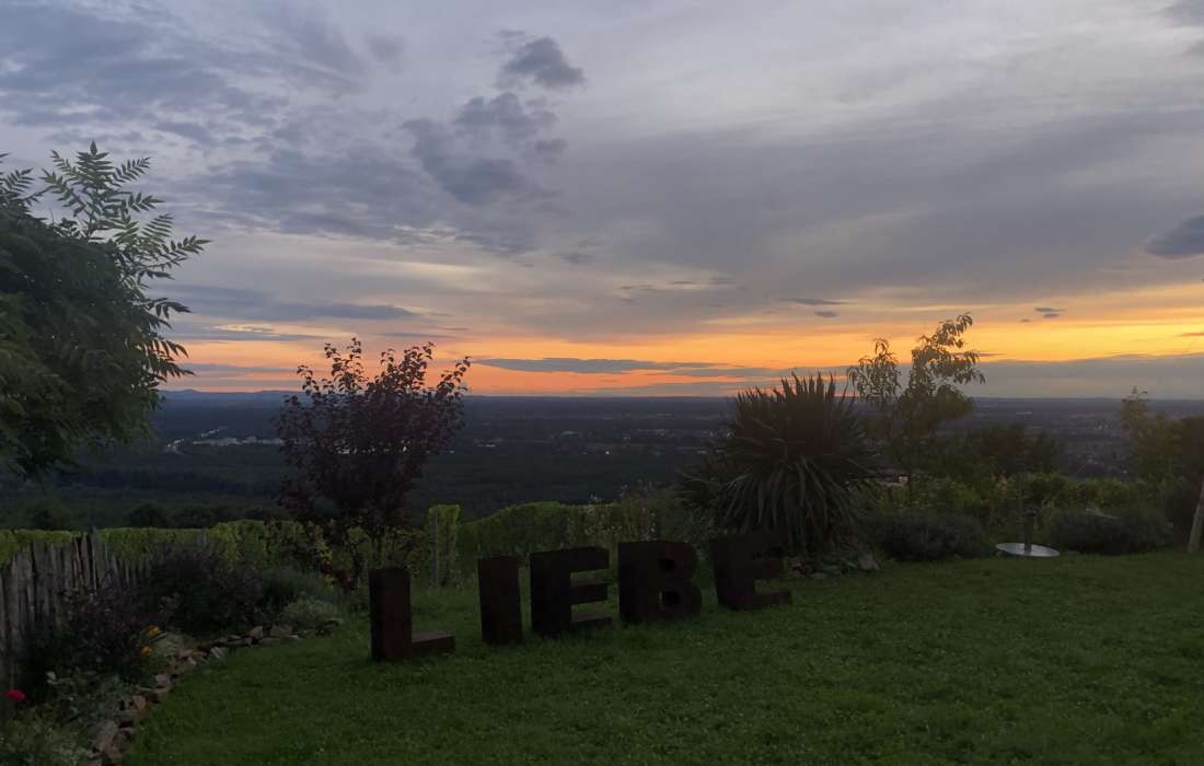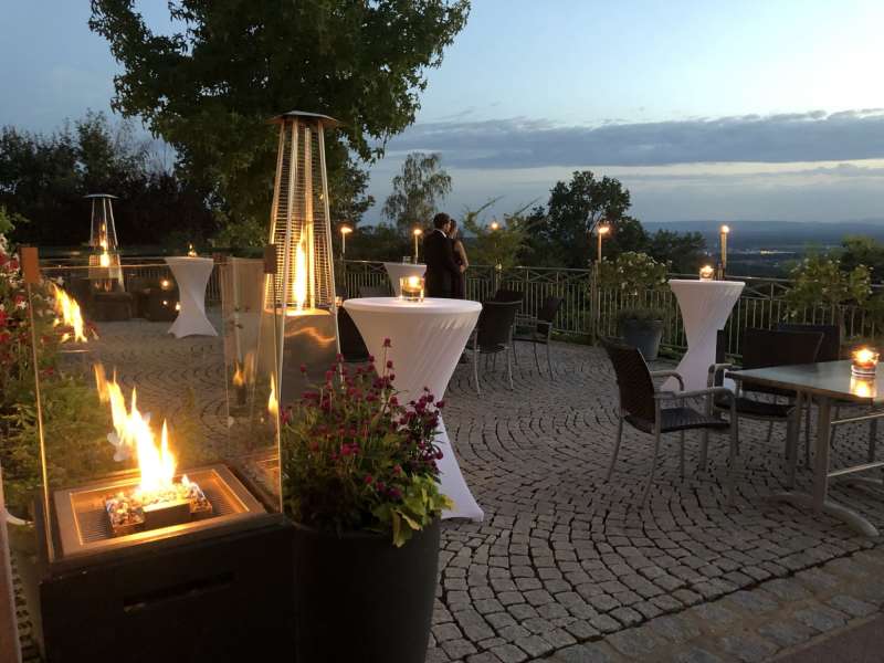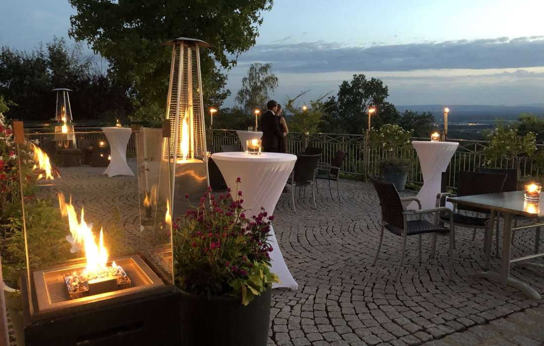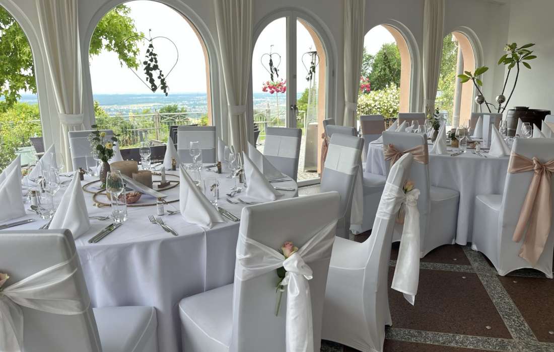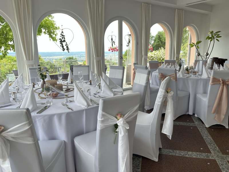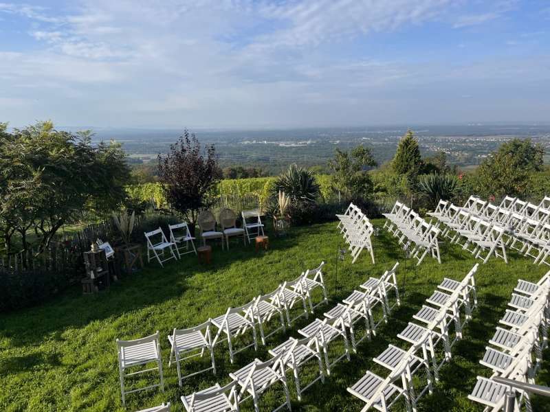 Das besondere an der Schönen Aussicht ist definitiv die Lage - hinten der direkte Zugang zum Wald, nach vorne der Blick auf die Weinberge und ins Tal bis zum Odenwald. Rundum umgeben von einen Meer aus Blumen und Pflanzen, die sofort ein Urlaubsfeeling vermitteln und eine Feier weit ab vom Alltäglichen ermöglicht.