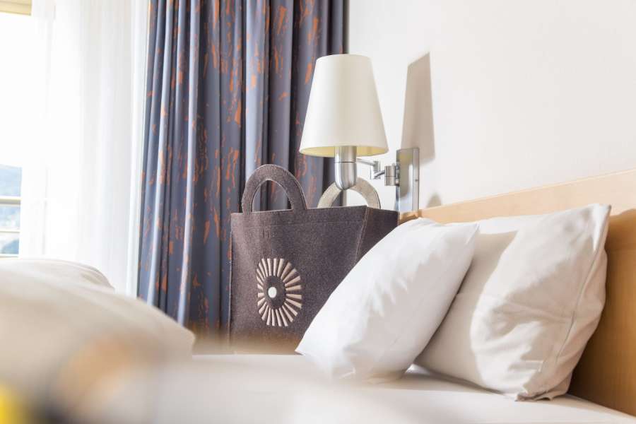 Im Anschluss wartet unsere exklusive Hochzeitssuite im 4. Stock mit einem atemberaubenden Blick über das Tal auf Sie. Ihre Gäste übernachten entspannt in einem unserer 89 stilvollen Doppelzimmer – und beim gemeinsamen Frühstück am nächsten Morgen lassen Sie Ihre Feier noch einmal in Ruhe Revue passieren.