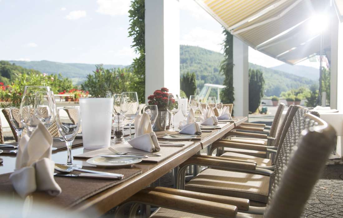 Weitläufige Terrasse für den Sektempfang oder eine freie Trauung unter freiem Himmel