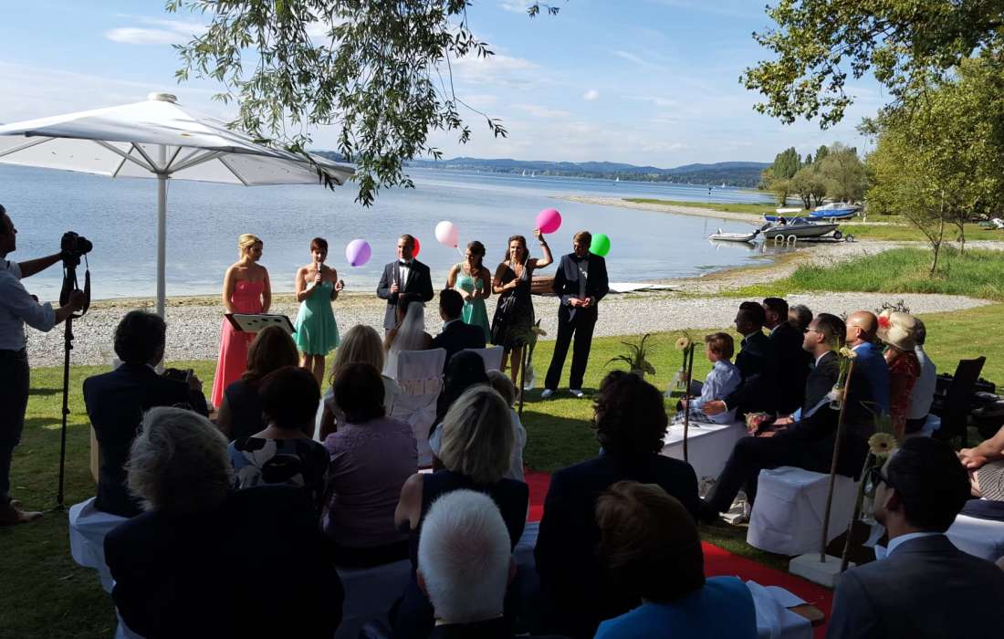 Sie sind auf der Suche nach einer besonderen Location für Ihre Freie Trauung mit anschließendem Sektempfang? Dann sind Sie bei uns genau richtig. Wir heißen Sie und Ihre Gäste in unserer Panorama-Location am direkten Seeufer der Insel Reichenau im Bodensee herzlich willkommen!