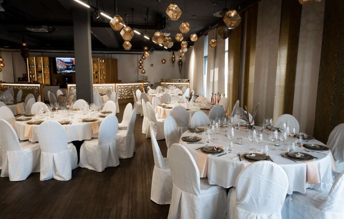 Feier mit bis zu 150 Personen an fertig eingedeckten Banketttischen und lass Dich von unserem Interieur und unserer Ausstattung verzaubern. Wir garantieren Dir und Deinen Gästen bereits beim Eintreten in die Location einen „Wow Effekt“. Buchen jetzt deinen Besichtigungstermin!
