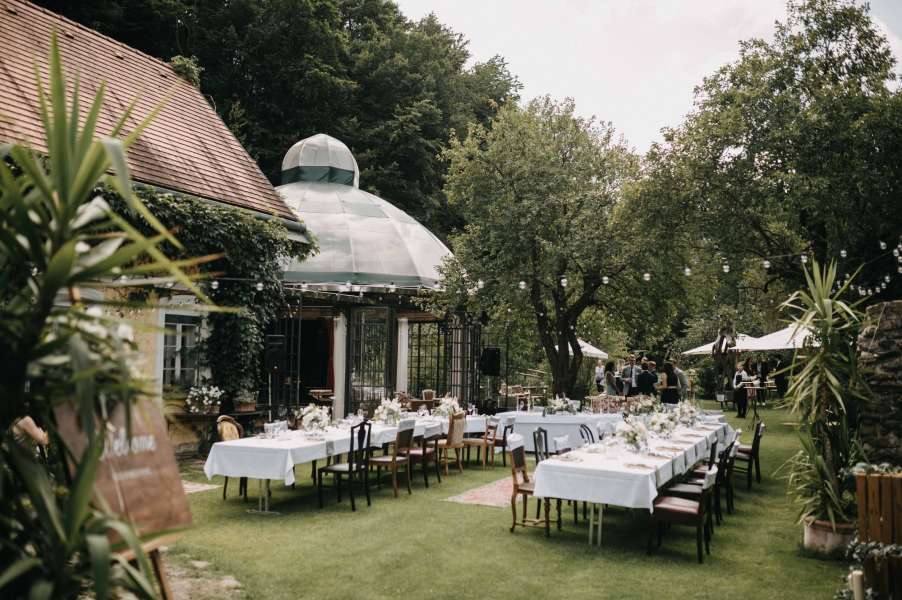 Im wildromantischen Garten direkt am Waldrand und dem Bach, der als Wienfluss bekannt ist, haben sich schon viele Brautpaare das Ja-Wort gegeben.