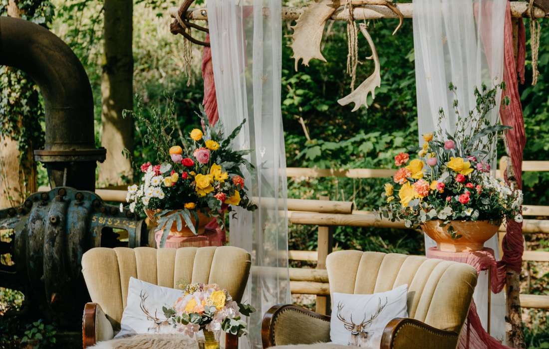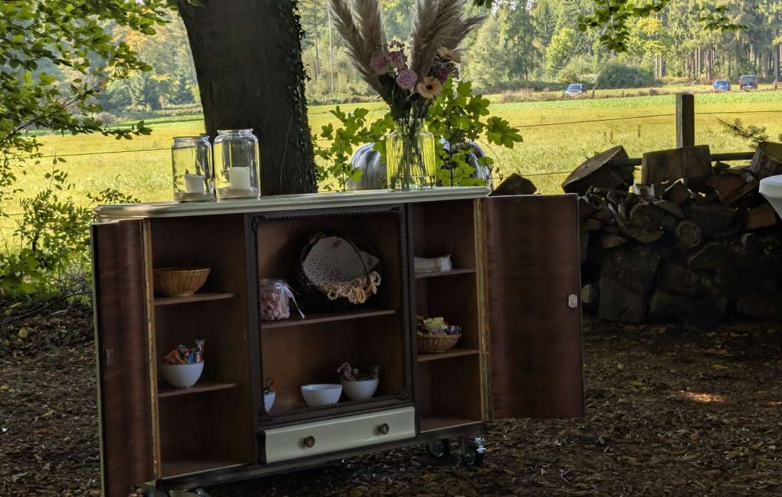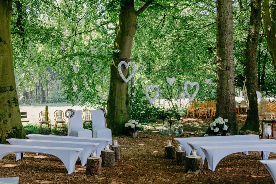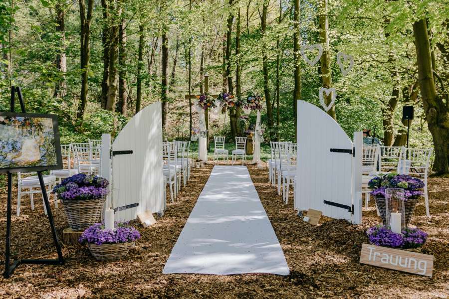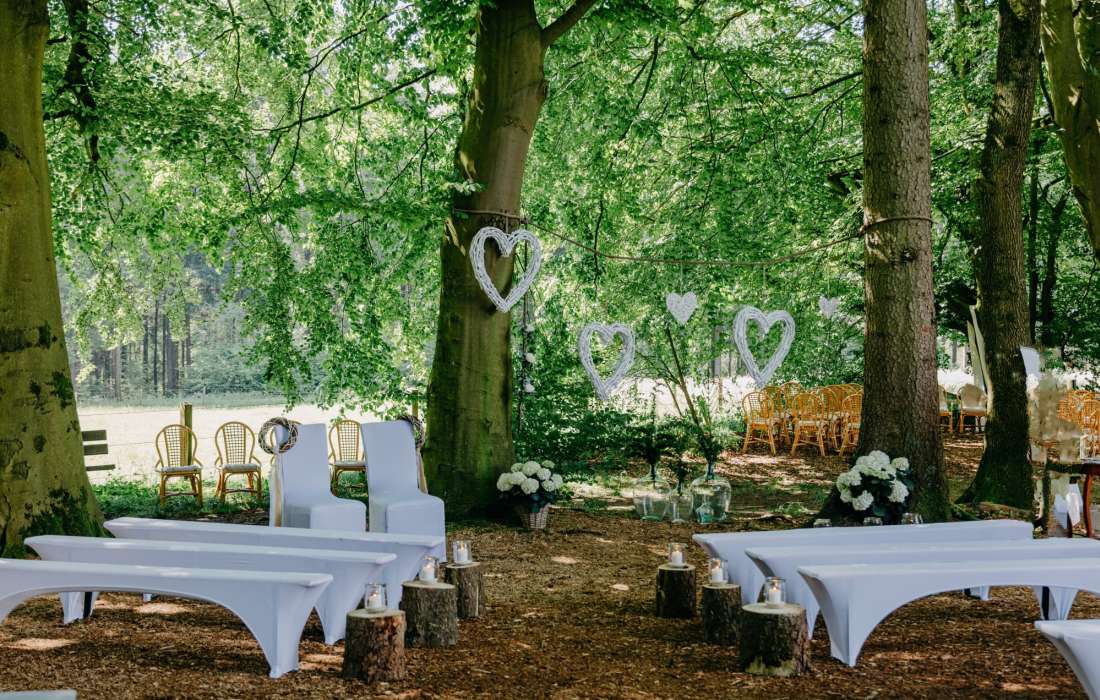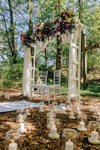 Inspirieren Sie uns mit ihren Dekorationswünschen und wir machen eine wunderschöne Hochzeit daraus. Wählen Sie aus verschiedenen Orten im Wald ihren Hochzeitsplatz aus.