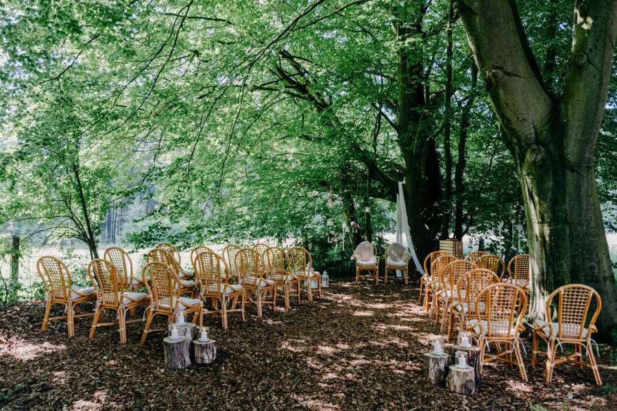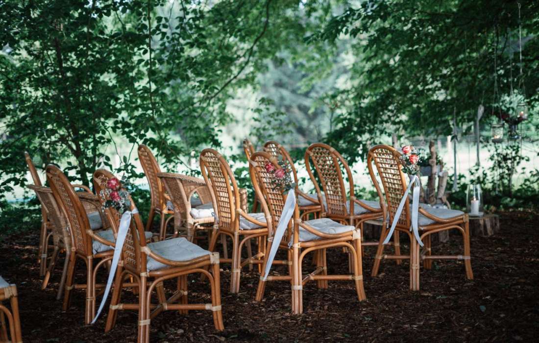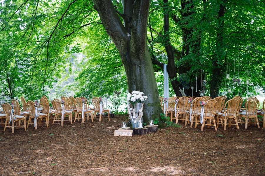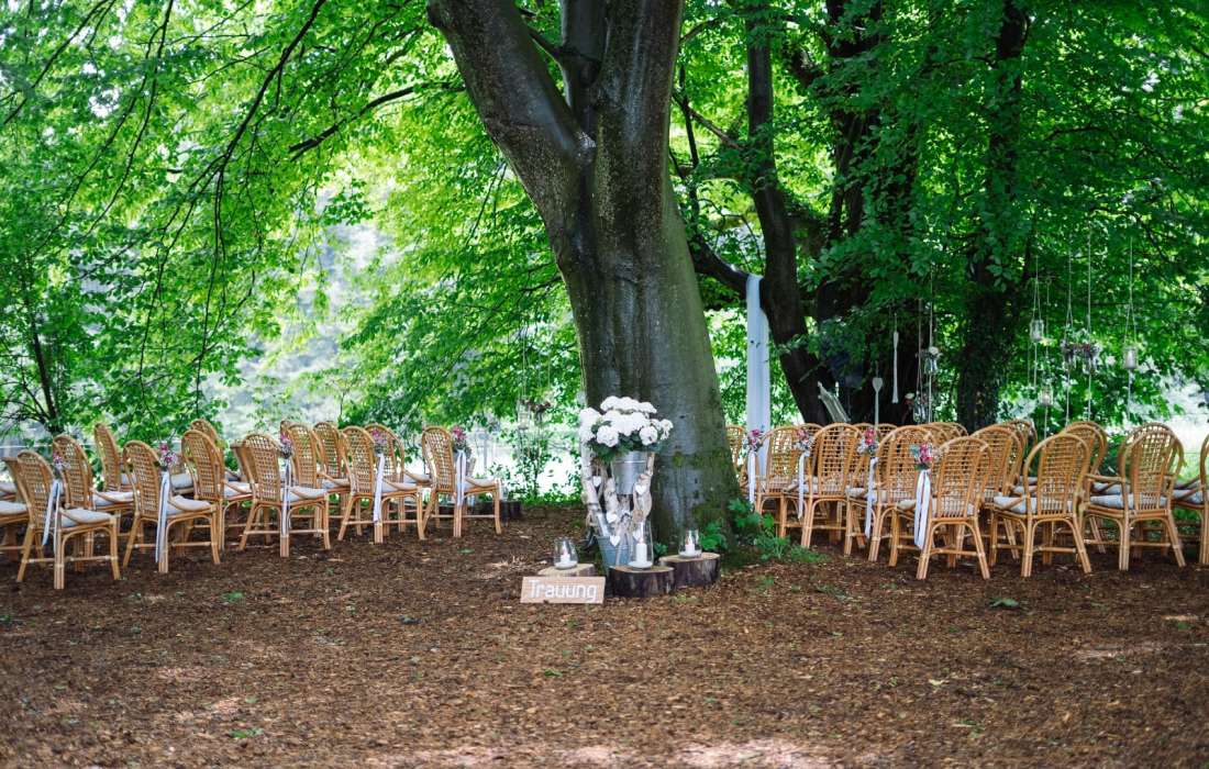 Umgeben von wunderschönen Bäumen und einem zauberhaften Blätterdach, haben Sie die Möglichkeit ihre Zeremonie bei uns zu gestalten.