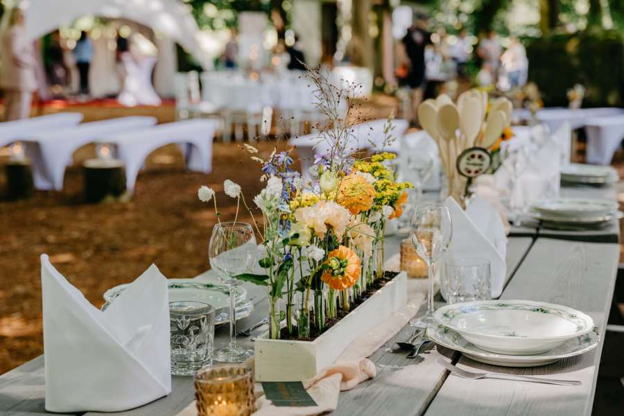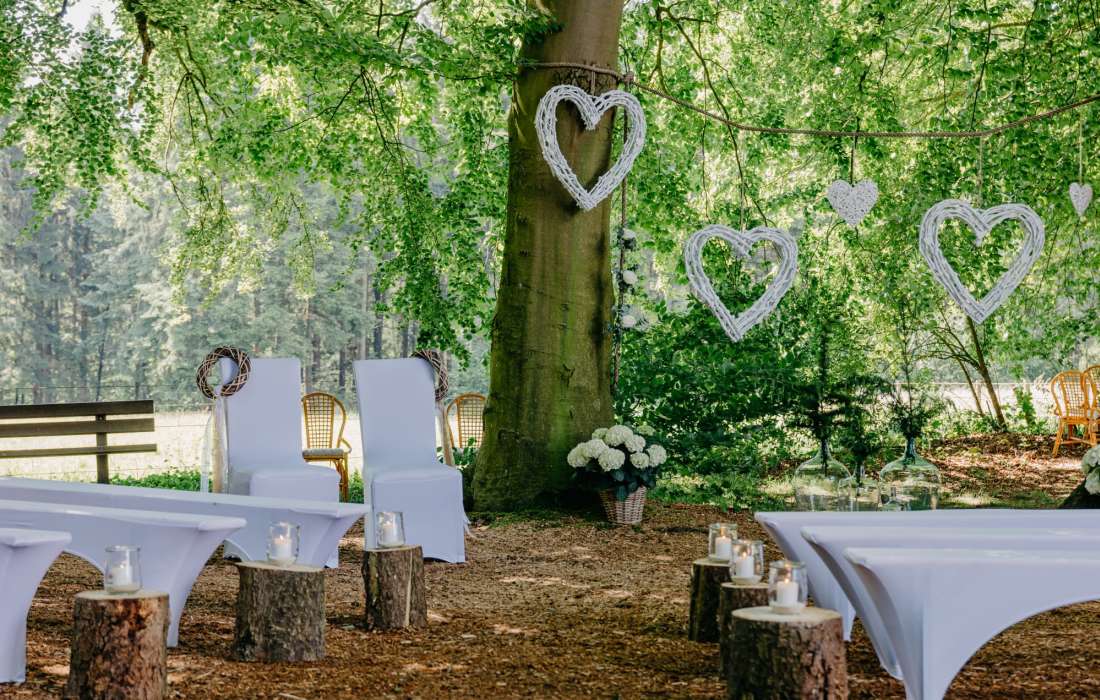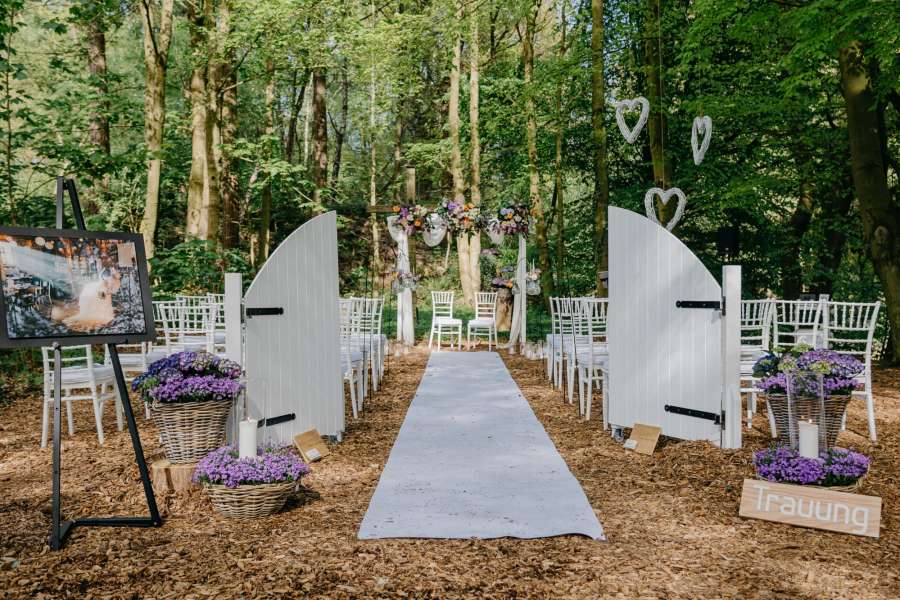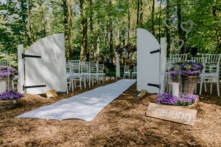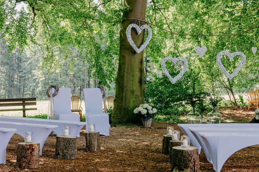 Inspirieren Sie uns mit ihren Dekorationswünschen und wir machen eine wunderschöne Hochzeit daraus. Wählen Sie aus verschiedenen Orten im Wald ihren Hochzeitsplatz aus.