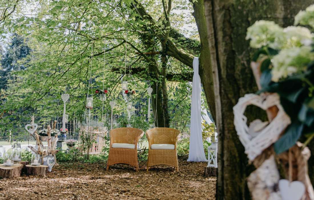 Umgeben von wunderschönen Bäumen und einem zauberhaften Blätterdach, haben Sie die Möglichkeit ihre Zeremonie bei uns zu gestalten.
