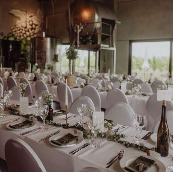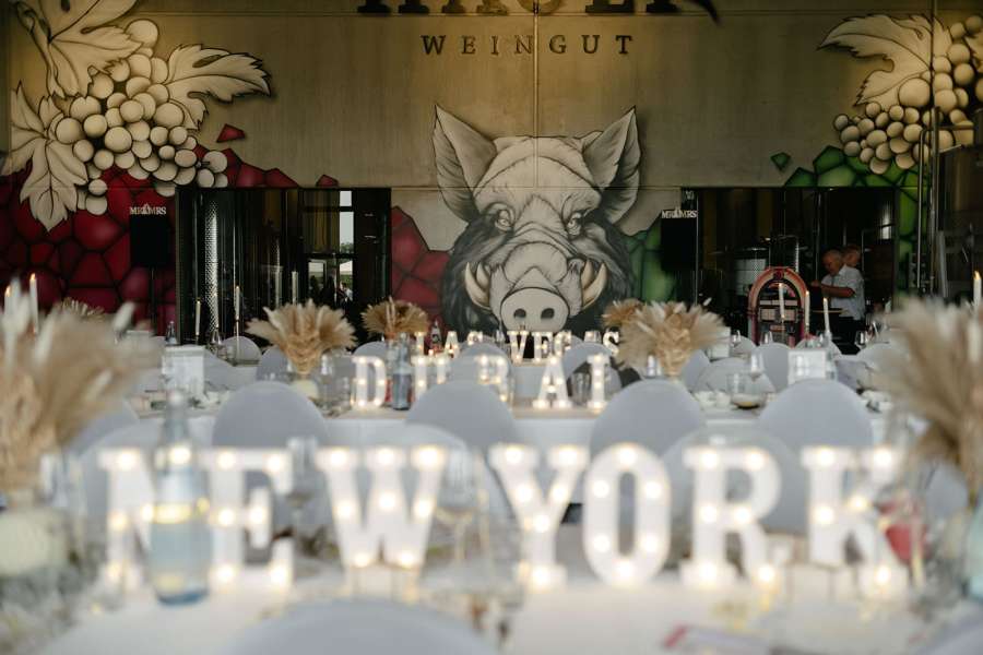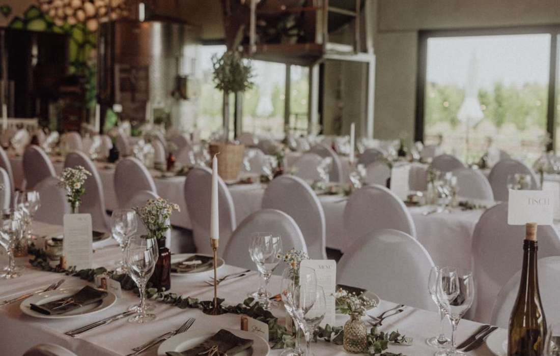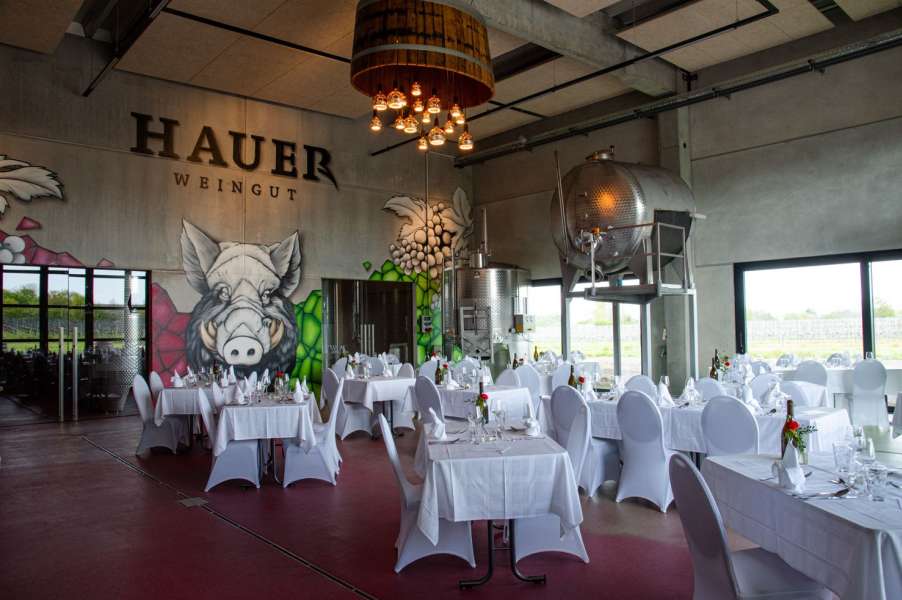 Feiert in einzigartigem Ambiente ,,mitten im Weingut''! Ihr seit auf der Suche nach einer Location die optisch die Grenzen der klassischen Location sprengt? Dann seit ihr bei uns genau richtig! Moderner Industriestil gepaart mit direktem Blick auf unsere angrenzenden Weinberge. Durch unsere großzügigen Glaselemente an der Süd- und Westseite der Location habt ihr den perfekten Blick und die perfekte Location für eure Feier. Auf den angrenzenden großzügigen Rasenflächen lassen sich im Außenbereich eure Freien Trauungen oder Sektempfänge unter freiem Himmel umsetzen. Kulinarisch und Organisatorisch könnt Ihr euch für einen unserer drei Hauscaterings entscheiden. Unsere Caterer erfüllen euch alle Wünsche und sind euer Ansprechpartner für alle Anliegen nach eurer Buchung. Auch die Getränke organisieren unsere Caterer in enger Abstimmung mit unserem Weingut für euch. Habt ihr Lust uns und unsere Location kennenzulernen? Dann meldet euch bei uns! Gerne machen wir einen Besichtigungstermin aus und zeigen euch alles vor Ort! Bis dann!