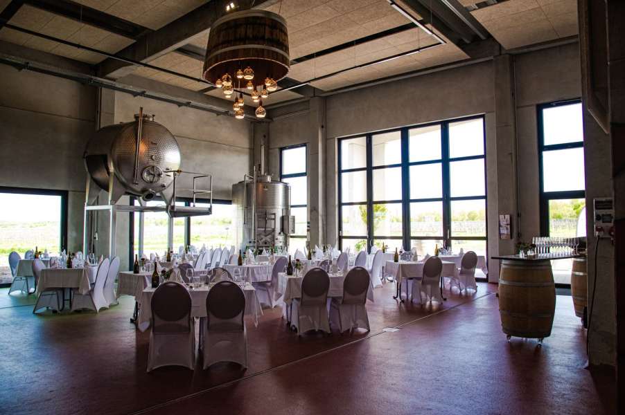 Feiert in einzigartigem Ambiente ,,mitten im Weingut''! Unsere neue Eventlocation, das Kelterhaus unseres Weingutes, mit direktem Blick auf die Weinberge freut