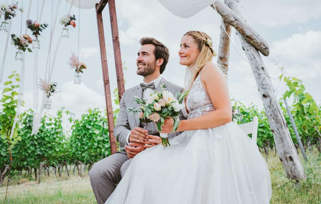 Das Weingut mit Scheunenflair. Freie Trauung im Weinberg, Empfang auf der sonnigen Terrasse